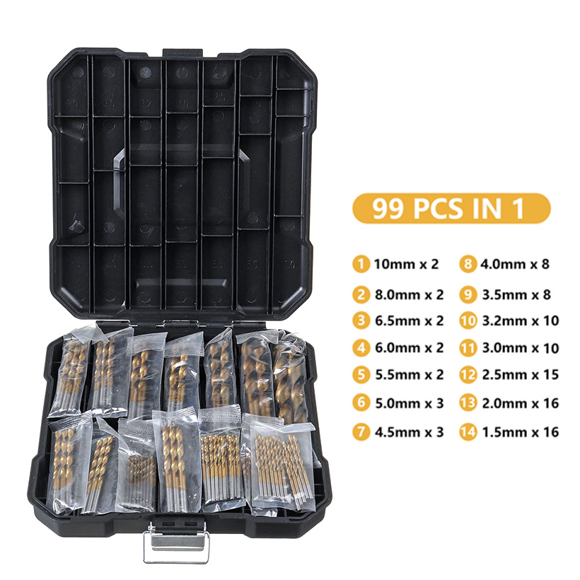Premium Multi-Purpose Titanium Drill Bit Assortment (99 Pcs) – Bulk